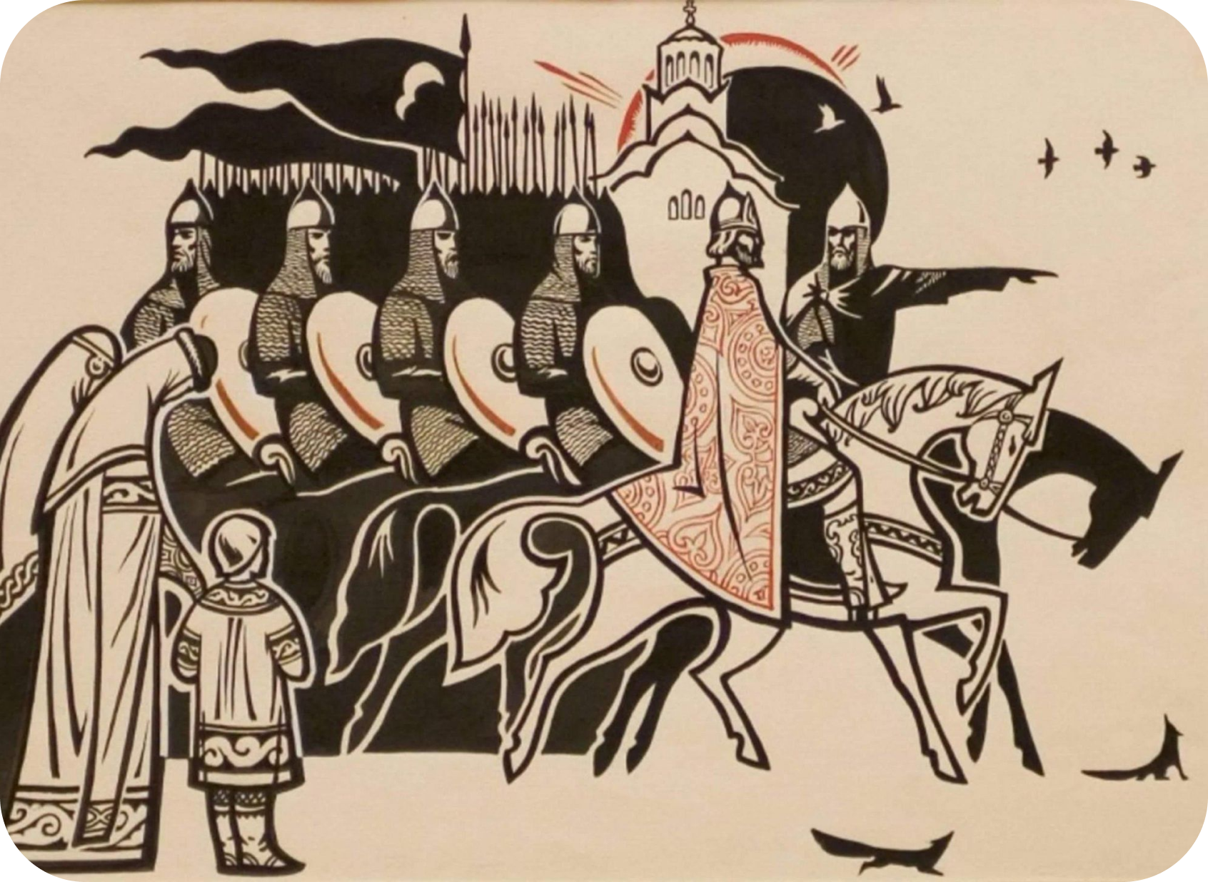 Почнем же, братие, повесть сию от стараго Владимера до ныняшнего Игоря, иже истягну умь крепостию своею и поостри сердца своего мужеством, наполнився ратнаго духа, наведе своя храбрыя полкы на землю Половецькую за землю Руськую».